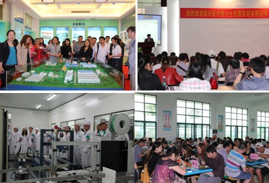 29日上午10:00,yl6776永利集团海南总厂总经理王培、公司党办主任何子群、总经理助理王辉携其他员工对远道而来的医疗界人士表示热烈的欢迎。该参观访问团由60余名四川医疗界人士组成,首先由讲解员蔡莉、李婷带领参观团参观了yl6776永利集团总厂办公大楼,让参观团所有成员对yl6776永利集团的历史、成就、事迹和现有规模、概况有个全方位的了解。产品讲解师杨中良经理向客人介绍了yl6776永利集团的产品生产和销售情况。