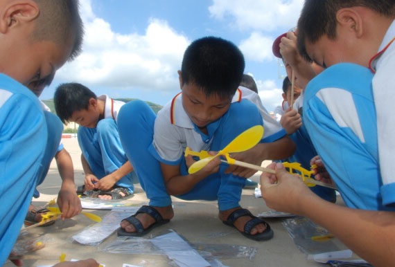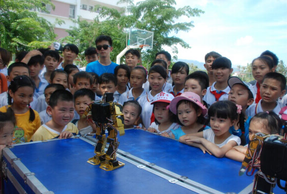 同时,海口电视台《宝贝真棒》栏目组还带来了一系列精彩纷呈的儿童节目,海南省科技活动中心还特意为孩子们派出了科普大篷车、带来了3D科普展板,在专业航模老师的带领下,来自城市里的三十个孩子和陵水的留守儿童结成了对子,一起制作航模,观看机器人表演。