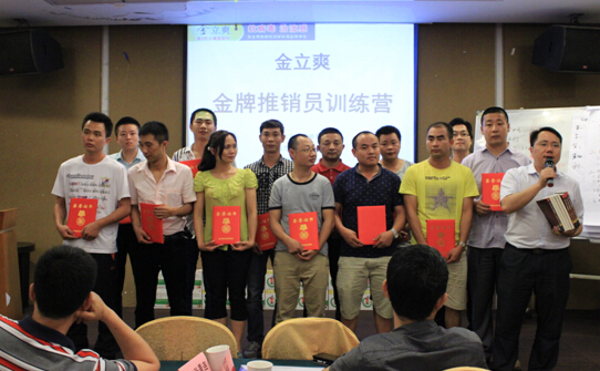 5月20日上午,市场部全国总监刘怀专程为学员们分享了外企营销经验,发表了《领导的责任和一线经理的角色》演讲,学员们深感肩负重担,随后的学术技能训练环节,气氛热烈而且全员投入。经过紧张的学习和积极的互动,训练营完成了对参训学员的考核,评选出了12名优秀学员。其中,深圳参训的学员曾经理,自己已经是一家医药公司老板,经过这次系统的培训和实操,训练营结束后,激动的说:“很感谢你们,这次东莞之行.让我更懂得yl6776永利集团现在与未来,现在心中有一古热血,一定要把‘金立爽’做起来!”