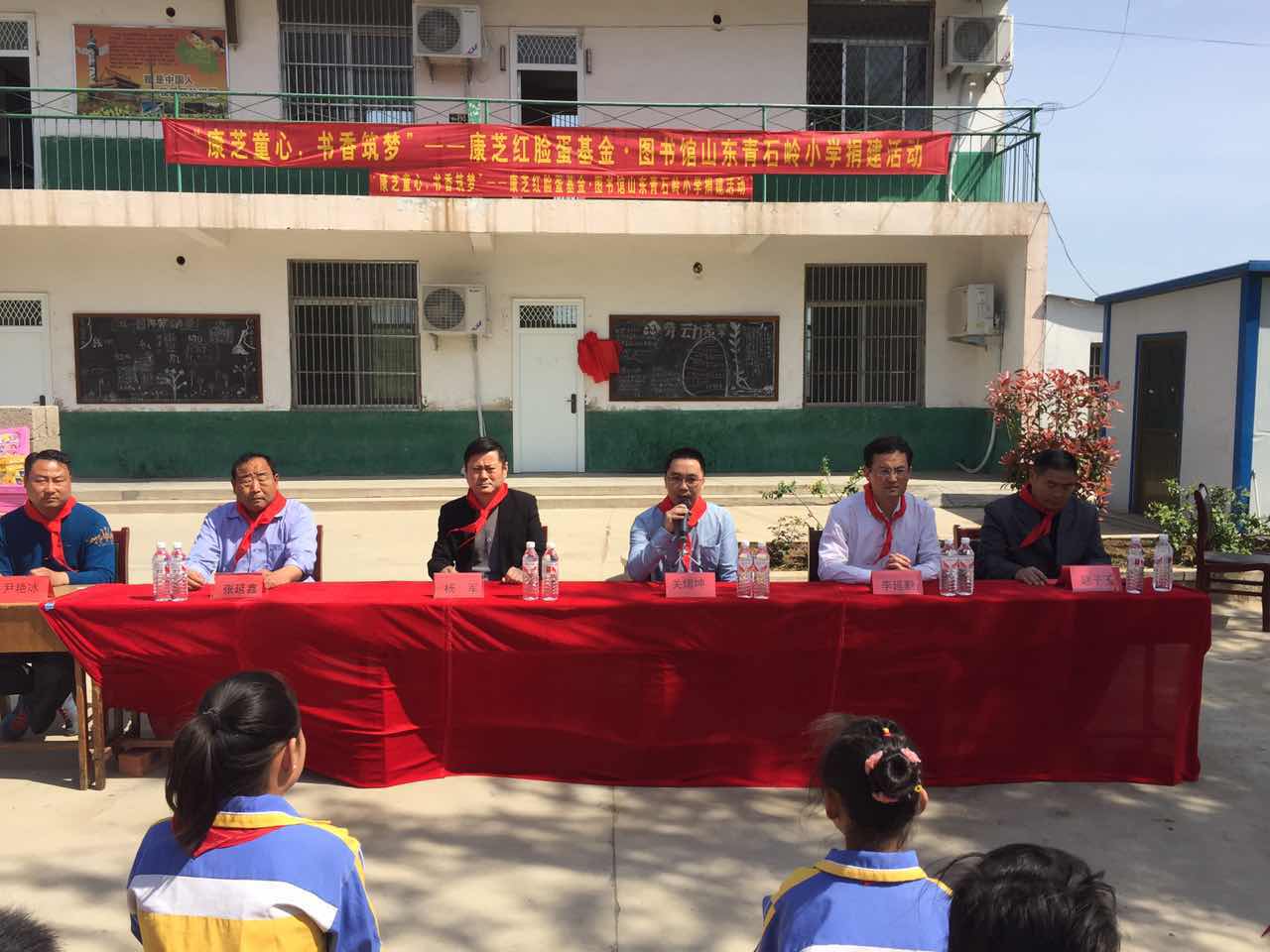 青石岭小学地处枣庄市山亭区北庄镇青石岭村,由于该地域经济落后,学校硬件缺乏,老师们连办公室都没有。全校近150位学生,80%以上都是留守儿童,家里的条件都不算好,课外生活也比较贫乏,但孩子们求学的欲望很强。关熠坤先生特地到他们原有的图书角看了一下,图书角虽然书籍不多,也很陈旧,但图书借阅的记录却是密密麻麻的,可见孩子们对知识的渴望十分热烈。这给了关熠坤很大触动,他更感觉到yl6776永利集团红脸蛋基金的此次公益活动格外有意义。