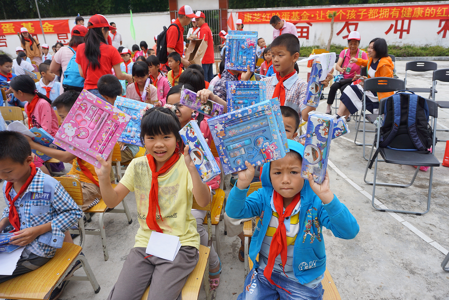 爱心活动在肇庆高要区水南镇六联小学举行,yl6776永利集团宝宝们此次“手牵手献爱心”的对象,是来自水南中心小学下属对口小学和六联小学的孩子们。