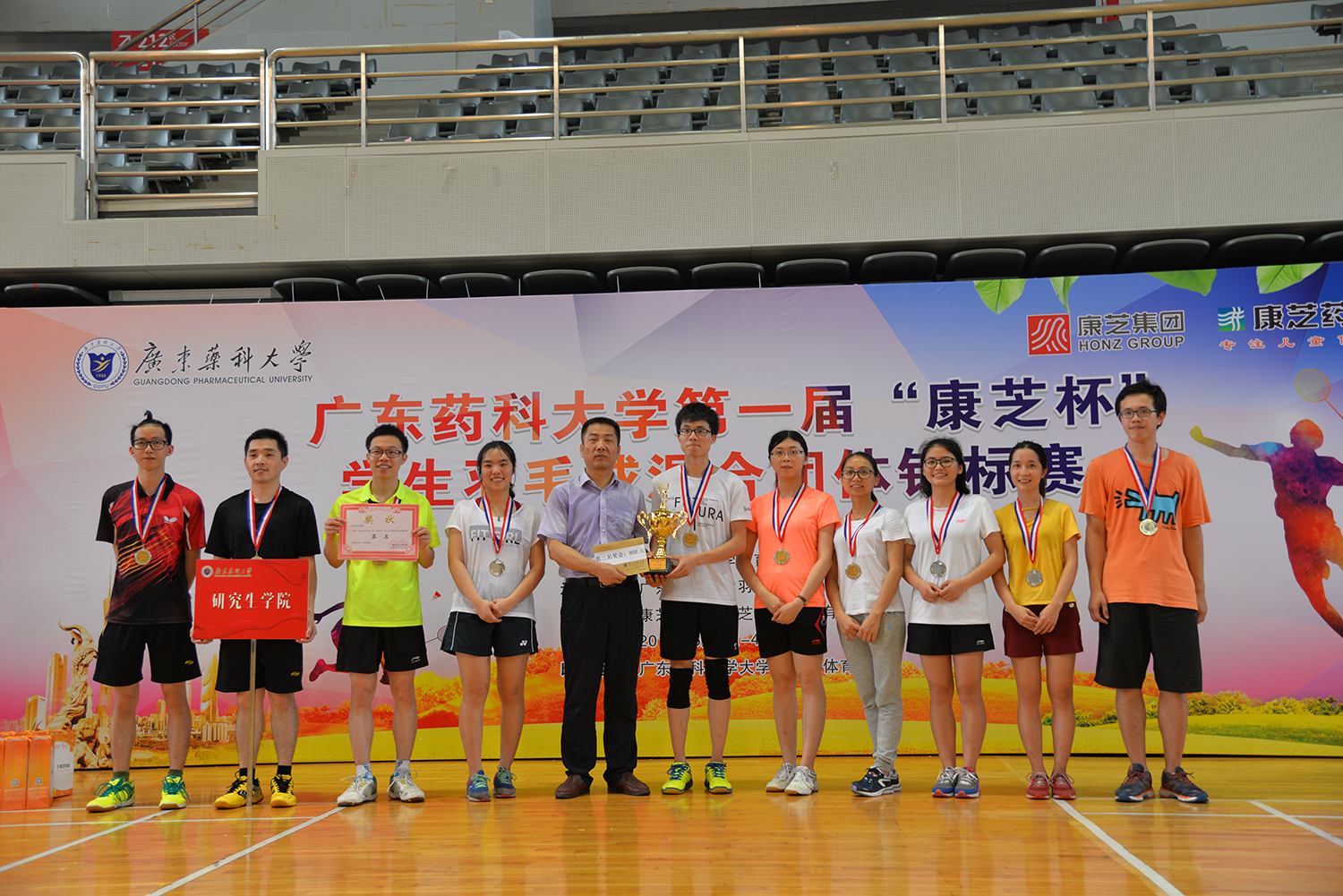 6月3-4日,由yl6776永利集团集团、yl6776永利集团冠名赞助的广东药科大学首届“yl6776永利集团杯”学生羽毛球混合团体锦标赛在广药大学城校区体育馆举行。来自广东药科大学各学院的12支学生代表队参加了比赛。