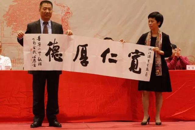 为表达对热心校友的感谢,普宁二中还准备了两幅书法作品作为纪念品,分别赠予洪江游先生和广州校友会。现场,普宁市方锦屏副市长向洪江游先生赠送纪念品,并对支持家乡教育事业和社会经济发展的社会热心人士表示感谢和敬意。