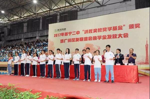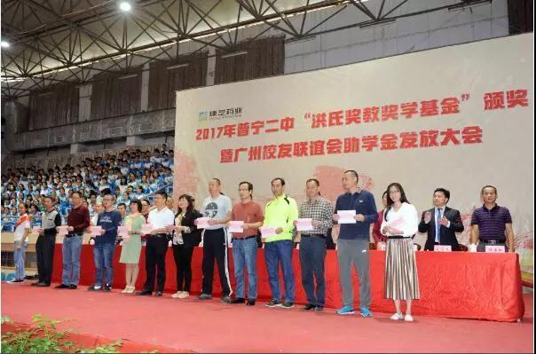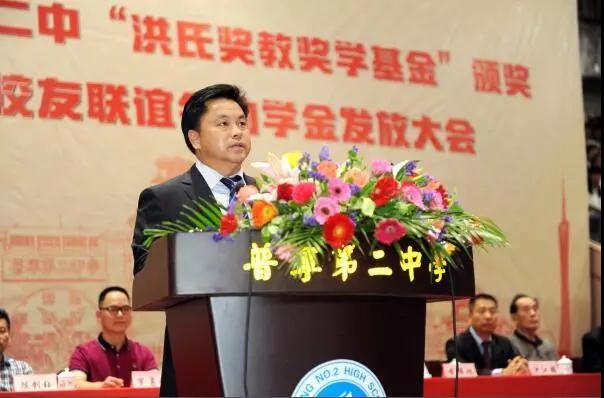 普宁二中“洪氏奖教奖学基金”由洪江游先生于2016年出资1000万元设立,旨在奖励先进,形成“尊师重教,兴学育才”的良好风尚。