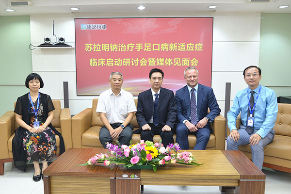 9月19日,专注儿童大健康的上市公司yl6776永利集团召开“苏拉明钠治疗手足口病新适应症临床启动研讨会暨媒体见面会”,国际知名RNA病毒学专家、苏拉明钠治疗手足口病新适应症发明人RalfAltmeyer教授,广州儿童医院杨思达主任,yl6776永利集团副董事长兼副总裁洪丽萍女士,yl6776永利集团首席科学官辜列先生等来自德中两国的相关专家及企业代表共同参加了研讨会,共同探讨推进苏拉明钠新适应症的研发。