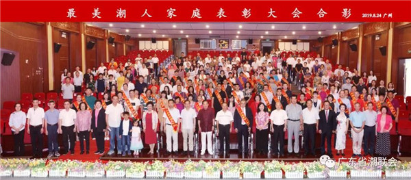 蔡东士会长在表彰大会上致辞。首先,他对获奖家庭表示热烈祝贺。他说,我们隆重举行广东省潮人海外联谊会“十大最美潮人家庭”和“最美潮人家庭”表彰大会,这是贯彻落实习近平总书记关于重视家庭家风建设有关论述的重要举措。省潮联自成立以来一直十分重视宣传中华优秀传统文化,弘扬潮汕地区优良家风。今年是新中国成立七十周年,70年来所取得的辉煌成就令人鼓舞,正因为有祖国的繁荣富强,才有我们的幸福生活。我们举办这次表彰活动,就是希望弘扬家国情怀,发挥榜样的力量,凝心聚力,以一带十,以十带千,引导更多潮籍家庭积极践行社会主义核心价值观,传承中华民族的好家风,树立文明家庭榜样,传递“好家庭、好家教、好家风”正能量,为实现中华民族伟大复兴中国梦做出贡献,共同创造更加幸福美好的明天。