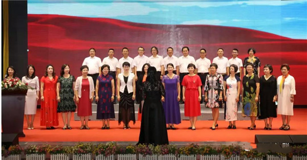 最后,由省潮联妇委会班子成员及校友会秘书长们共同登台合唱《我和我的祖国》。在激情高昂的旋律和温暖热烈的气氛中,“最美潮人家庭”表彰大会落下帷幕。