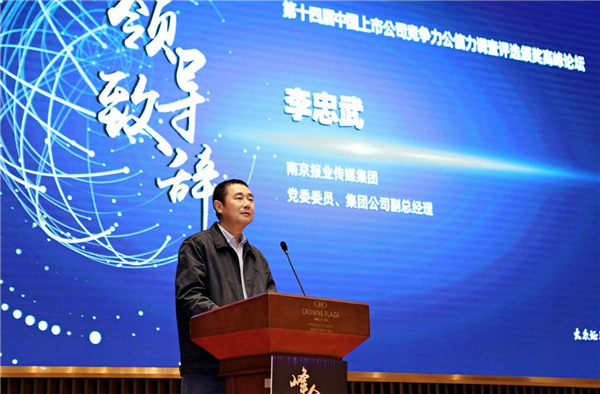 会上,南京报业传媒集团党委委员、集团公司副总经理李忠武在致辞中表示,目前沪深上市公司已超过3600家,拥有1.55亿投资者,上市公司已经成为中国经济发展当仁不让的中流砥柱。