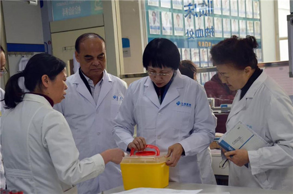 彭教授从医疗器械回收、清洗、消毒灭菌、无菌物品存放环节到拖把、抹布的使用清洗情况,都一一检查,还通过现场询问科室主任、医生、护士、后勤人员,了解医院感染管理流程、制度的落实情况,并对九洲医院的院感工作给予了极高的评价。
