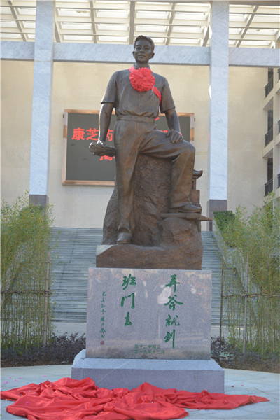 普宁市人民政府蔡桂君副市长作了讲话,她对普宁二中新校区增添一个标志性的文化景观表示热烈的祝贺,并向捐赠雕像的洪江游先生表示崇高的敬意,向雕像家曹崇恩先生等的辛勤付出表示衷心感谢。她希望二中师生不仅要把雕像作为一种校园景观,而且要更多地思考雕像蕴藏的创新精神,汲取其中蕴藏的精神并用之于教学和学习中去。