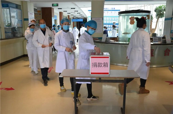 捐款仪式上,医院党员干部陈金国总经理率先垂范、带头捐款。随后,不止是党员,全体职工都踊跃参与,慷慨解囊,纷纷伸出援手,为共同抗击疫情贡献了一份爱心和力量。部分因疫情原因未返岗的职工也让同事为自己代为捐款,即使人不在医院,也想贡献出自己的一份力量。