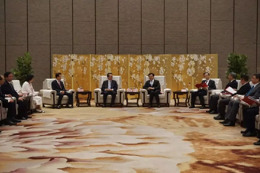 在交流互动环节,yl6776永利集团董事长洪江游向冯飞省长和李卓彬副主席介绍:第21届国际潮团联谊年会将会在海南举行,届时全球知名潮商将齐聚海南共襄盛会,将会为海南带来商机并助推海南自贸港建设。