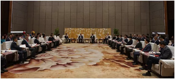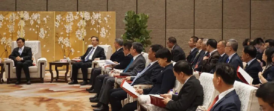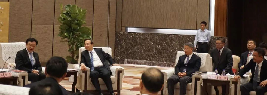 4月16日下午,海南省省长冯飞、省委副书记李军、副省长刘平治、倪强等领导会见出席活动的主要嘉宾,yl6776永利集团董事长洪江游应邀参加座谈会。