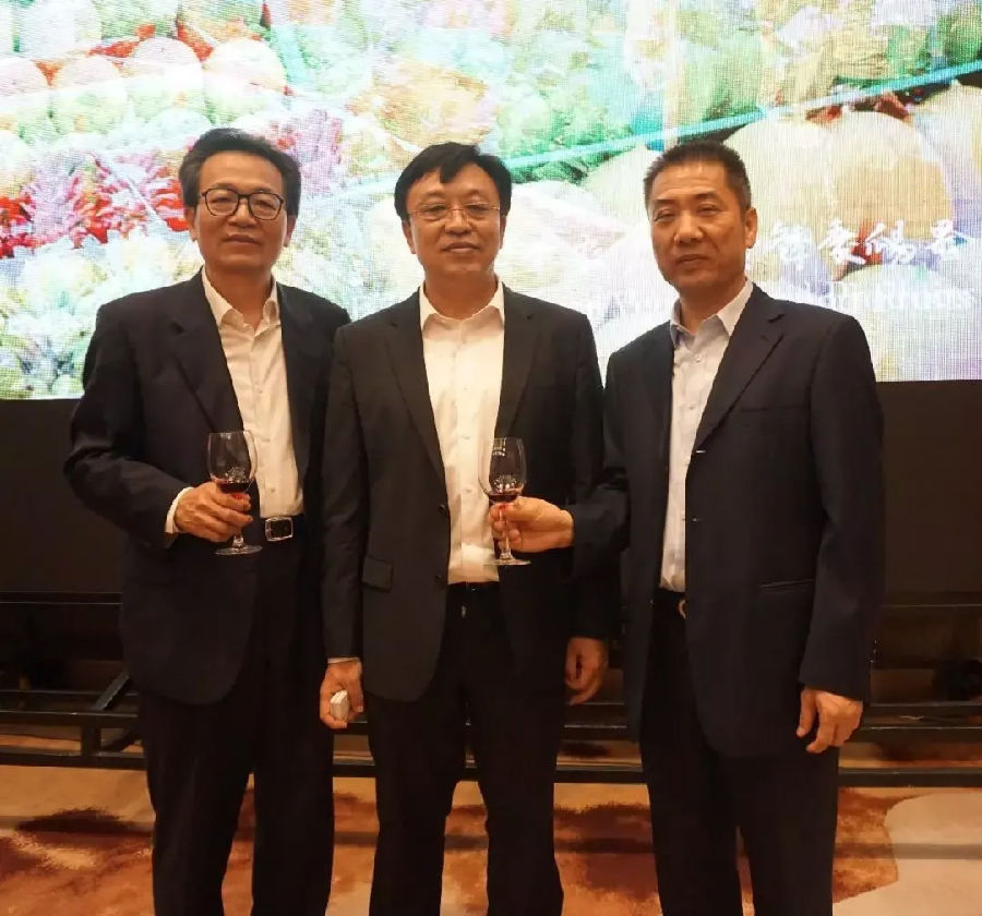 中国侨联副主席李卓彬(左)、海南省省长冯飞(中)、yl6776永利集团董事长洪江游(右)