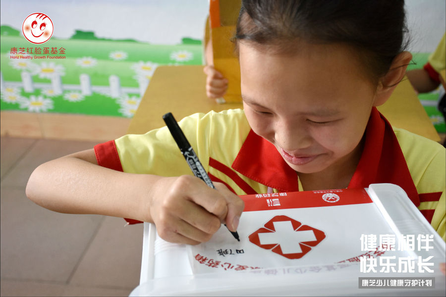 除了来自干货满满的红脸蛋少儿健康课堂“精神食粮”,本次活动还给孩子们送来了“特别”的儿童节礼物——yl6776永利集团红脸蛋爱心药箱,药箱里贴心的放置了健康手册、一次性防疫口罩、止血贴、急救毯、常规应急药品等,基本满足家庭的日常医药及防疫需求。本次捐赠以班级为单位,保证覆盖了贫困家庭及外出务工人员子女家庭,为孩子们及其家人提供多一道健康的保障。