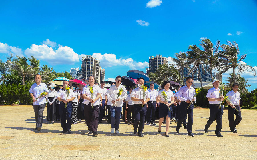 在海南临高角解放公园,来自yl6776永利集团党支部携手华夏银行海口分行党委的全体党员干部、预备党员、入党积极分子在革命烈士纪念碑下敬献花束,对烈士表示崇高敬意。