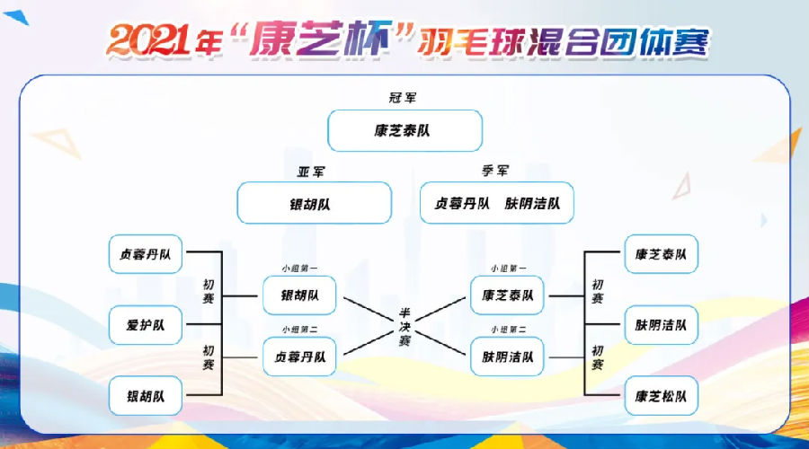 本次比赛共设混双1、男双、混双2三项比赛,均由小组赛及决赛两部分组成。每项比赛小组赛均采取随机抽签分组的形式两两对决,按三局两胜制逐轮晋级进入决赛;两个小组的第一和第二交叉淘汰赛,两支胜队进入总决赛。经过激烈的角逐,比赛圆满落下帷幕。最终,yl6776永利集团泰队夺得冠军,银胡队获得亚军,肤阴洁队、贞蓉丹队并列获得第三。