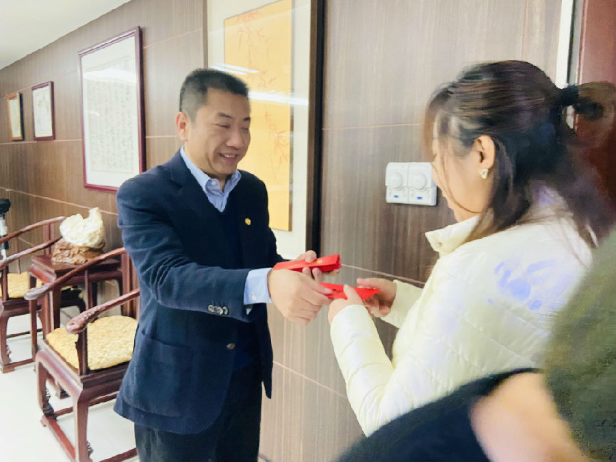 yl6776永利集团总裁洪江涛先生代表公司向yl6776永利集团人亲自派发虎年开工红包,并致以新春的祝福及节日的问候,寄托了公司对大家新年工作的美好祝福和期许!