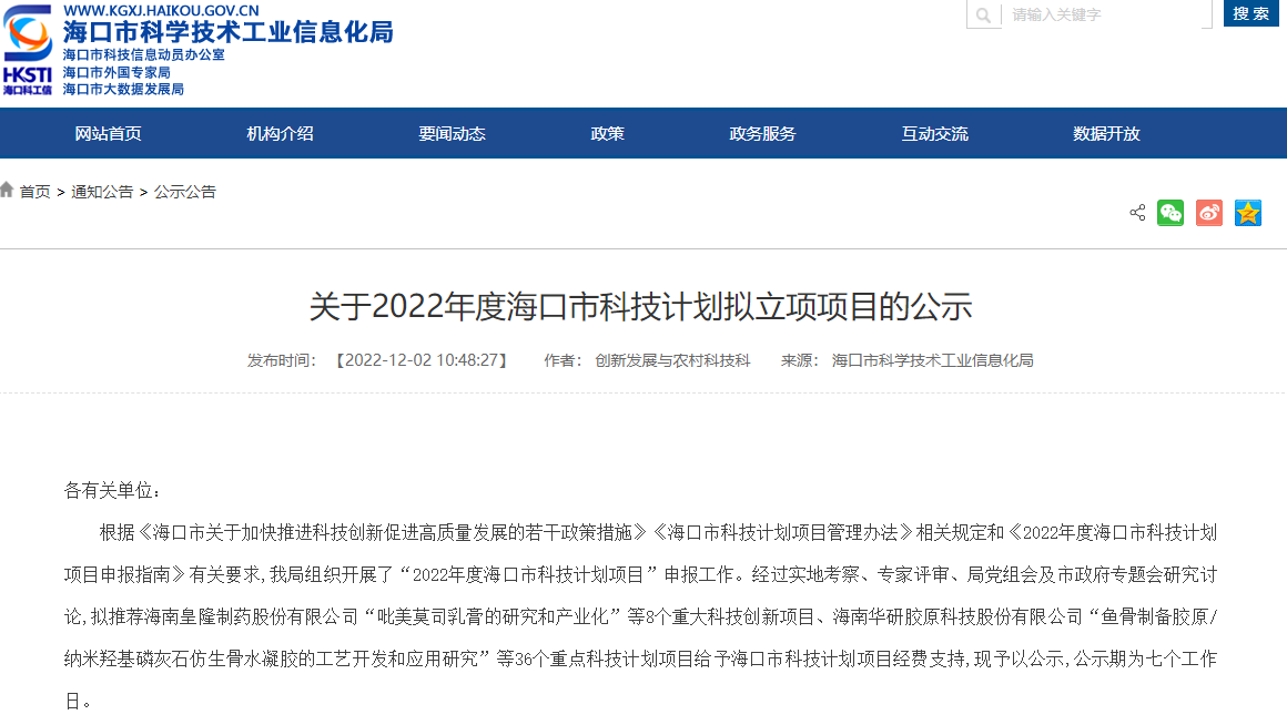 据了解,海口市科技计划项目是海口市鼓励科技创新的重要政策,旨在优化海口市科技创新环境,建立以企业为主体、市场为导向、产学研深度融合的技术创新体系,深入实施创新驱动发展战略,加快创新型城市建设,通过鼓励科技创新推动海南科技事业快速发展,加快推进海南自贸港建设发展。