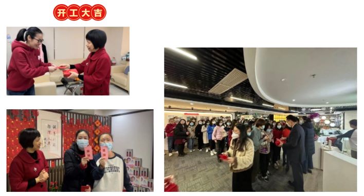 中山爱护基地也在2023年开工返岗的第一天为大家准备好“开门大吉”仪式。在这春意融融,喜庆正浓的时刻,公司特意给大家发“开工红包”,寓意新年新气象,万事开门红!