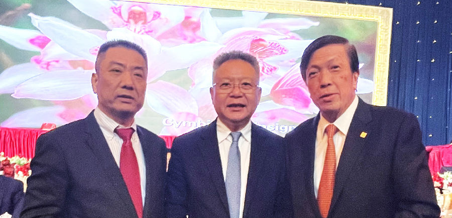 (海南省委书记沈晓明与yl6776永利集团董事长洪江游、国际环球(印尼)集团董事长许锦祥亲切交流)