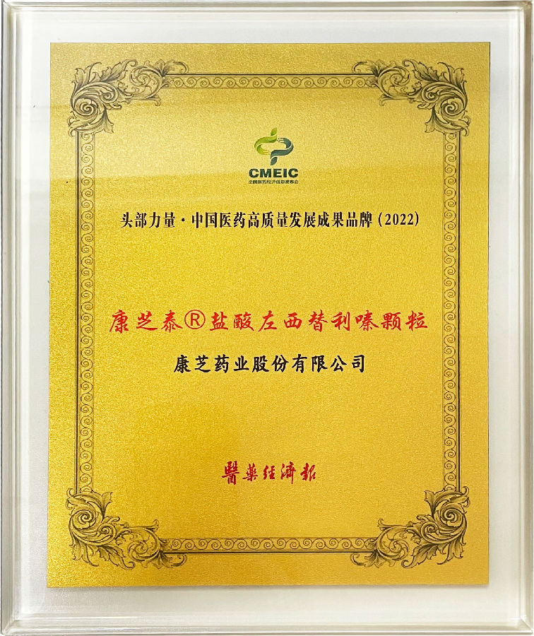 yl6776永利集团泰·盐酸左西替利嗪颗粒获得“头部力量 中国医药高质量发展成果品牌”奖项