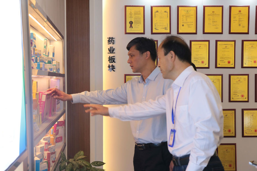 在高洪常总经理的带领下,江西省赣州市副市长邹治宇参观了yl6776永利集团展厅,深入了解yl6776永利集团的发展历程、明星产品以及研发实力等。