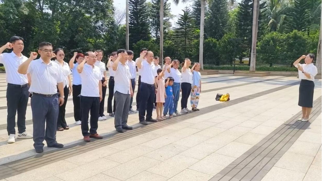 上午10点,全体参与人员在yl6776永利集团党支部书记的带领下,整齐有序地来到解放海南岛战役烈士陵园。在庄严肃穆的革命烈士纪念碑前,大家整齐列队,低头默哀,表达对革命烈士的崇高敬意和深切缅怀。这一刻,时间仿佛凝固,只有风吹过树叶的沙沙声和人们心中的默念声。