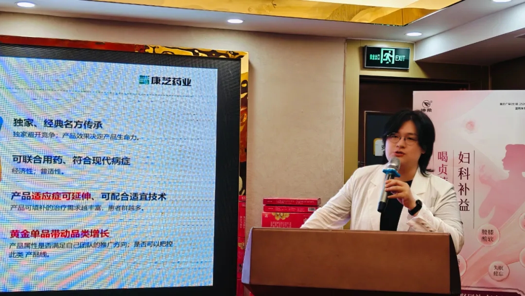 产品的长足发展离不开市场情况分析、市场策略制定和重点项目规划等全方位支持。市场部产品经理陈月女士在作《贞蓉丹合剂2025年破局之道》主题分享时表示,贞蓉丹合剂是一个具有广阔市场空间的黄金战略大单品,新一年将通过“三位一体”赋能终端、创新营销策略、用服务感动客户、用疗效征服患者、大力度塑造形象、全渠道占位推广、政策助推、帮扶发展等组合拳,助推产品营销工作高效开展。