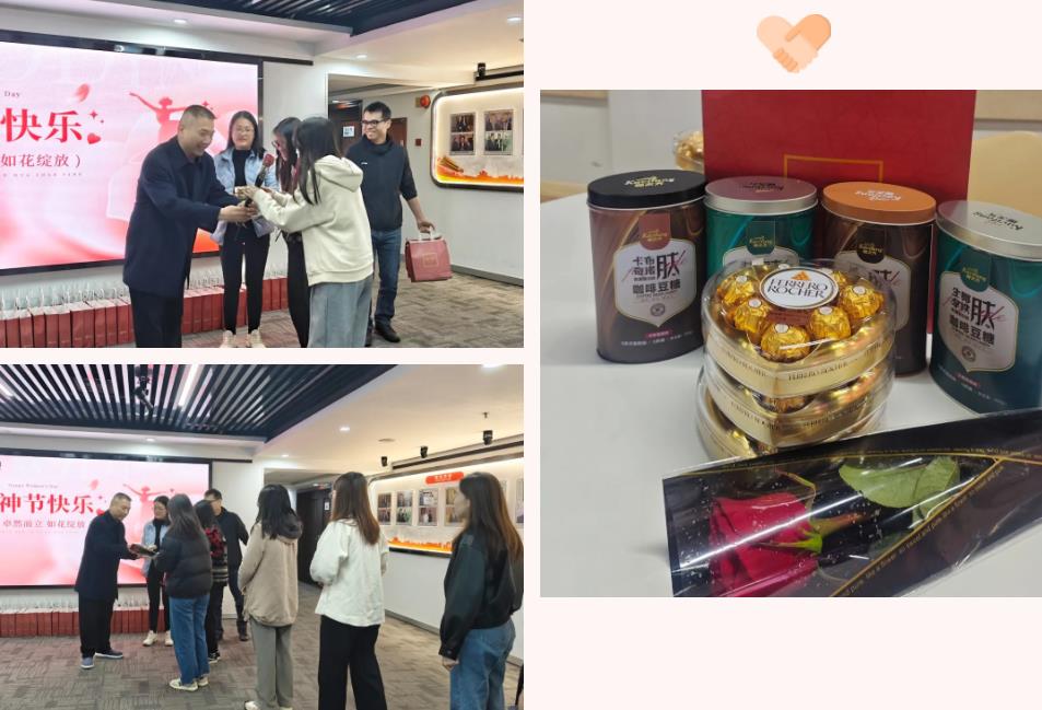 广州区域工会组织了“愿你卓然而立 如花绽放——女神节快乐”主题活动。公司董事长洪江游、工会主席龙殿康亲临现场,将工会精心准备的玫瑰花、巧克力、咖啡糖豆等节日礼品,一一送到“女神们”手上,同时不忘送上贴心的节日慰问,以表达公司对女职工辛勤付出的由衷感谢。