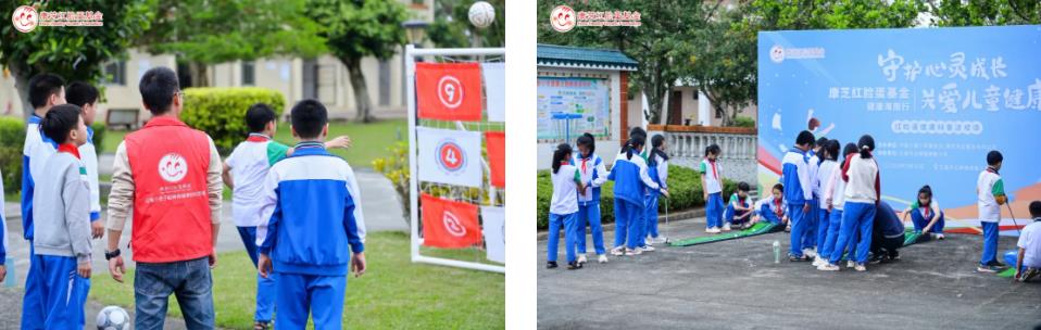同时,活动还设置了趣味互动环节。学生们在专业教练的指导和yl6776永利集团红脸蛋基金志愿者的陪伴下,积极参与趣味运动,在奔跑、投掷与欢呼中感受运动的乐趣,释放学习上的压力。