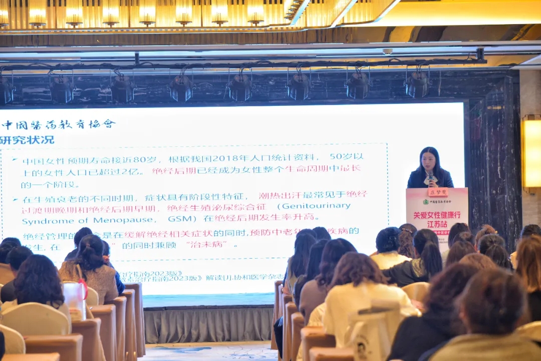 在江苏站,上海中医药大学附属岳阳中西医结合医院妇科专家、海派中医蔡氏妇科第九代传承人庄梦斐主任发表了《沪上江湾蔡氏妇科“脾肾理论”在绝经前后诸证的临床新用》主题报告,掀起第一轮学术分享高潮。