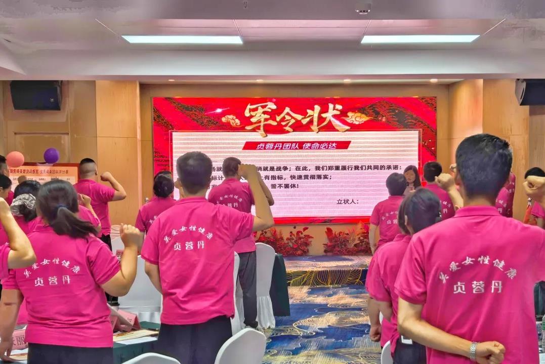 训练营尾声,潘彦轻总监代表贞蓉丹事业部和各合作伙伴依次签下“军令状”,合作伙伴们纷纷表示,将继续为贞蓉丹合剂的营销工作全力以赴。
