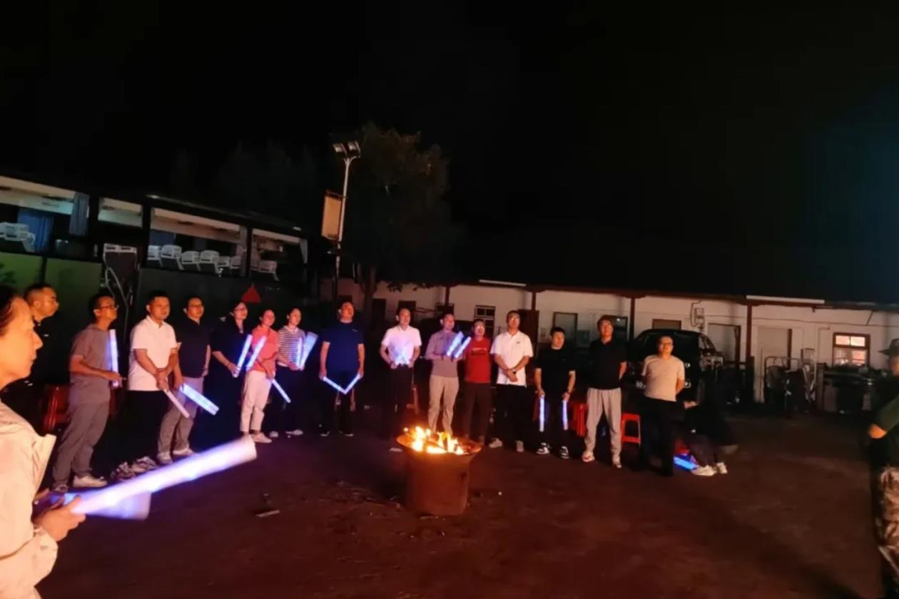 最后,“胜利联谊”主题篝火晚会温情启幕。暖场互动点燃全体人员激情,趣味游戏拉近彼此距离,集体红歌联唱传递红色信仰,才艺展示展现团队活力。高潮环节,领导手持火把绕场击掌,共同点燃篝火,火光映照着每个人坚定的脸庞,也点燃了大家并肩奋斗的热情。全体人员将以井冈山精神为指引,以本次联谊为契机,同心同德、并肩作战,决胜销售旺季,共创事业新高峰。